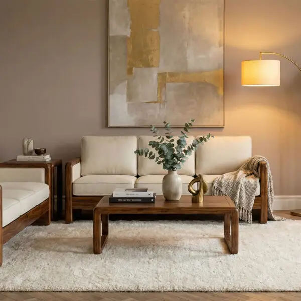 The complete living room collection featuring a sofa, center table, and side table. Available in all wood types including Nilambur Teak, Rosewood, Mahogany, Jackfruit & more. Custom design also available.