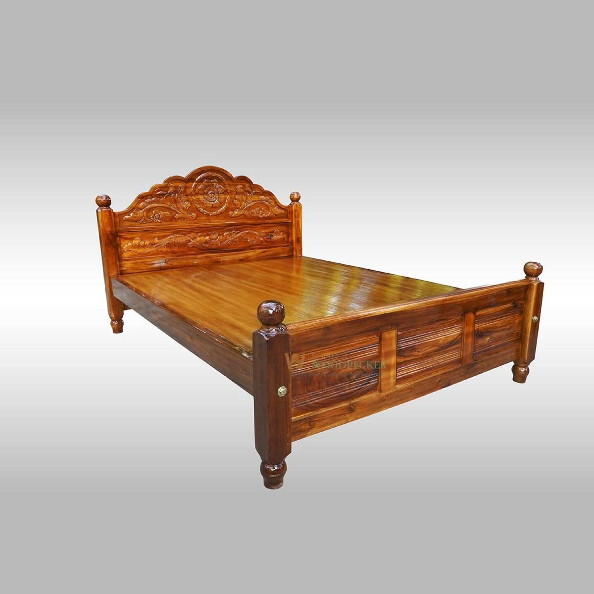 This Traditional Carved Cot is a tribute to the golden era of Indian wood carving. SolidWoodPecker’s master artisans have meticulously hand-carved the headboard with elaborate floral motifs and traditional curves, making each piece unique. This cot is typically crafted from lustrous Jackfruit wood or golden Nilambur Teak to accentuate the depth of the carvings. The glossy finish protects the intricate details while highlighting the wood’s natural chatoyancy. Robust, turned legs and thick side rails ensure that while the design is ornate, the construction remains heavy-duty and practical for daily use. This is the perfect choice for those who cherish the artistic legacy of Kerala’s furniture making.