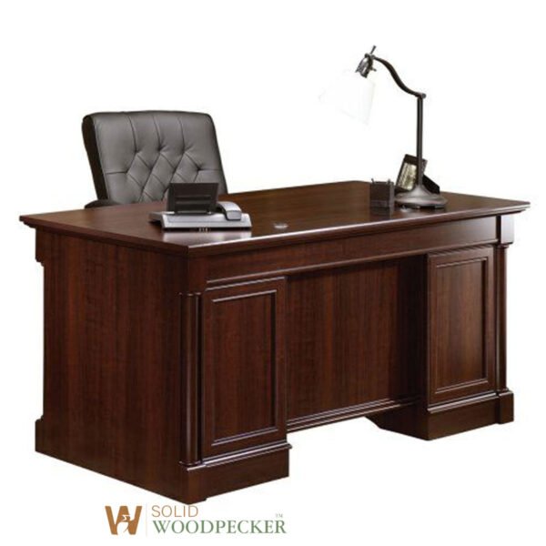 A commanding solid wood desk for corporate-style home offices. Available in all wood types including Nilambur Teak, Rosewood, Mahogany, Jackfruit & more. Custom design also available.
