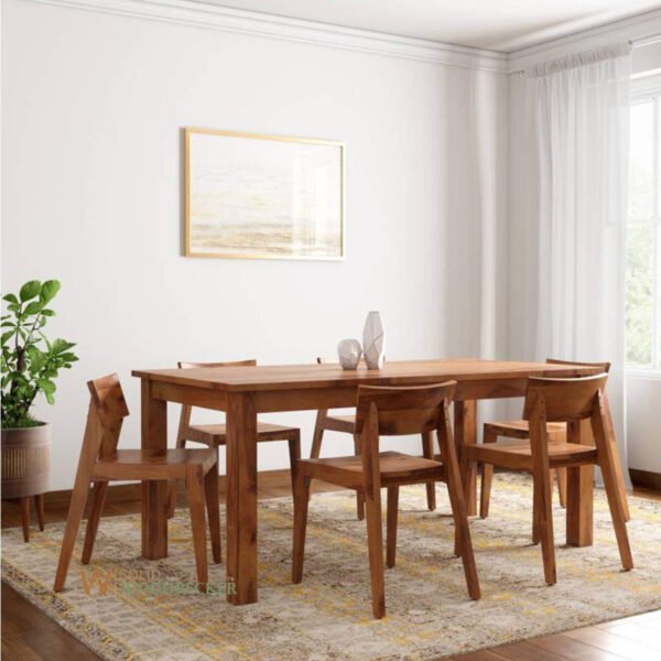 The perfect balance of strength and style. A solid wood dining set with thick legs for everyday use. Available in all wood types including Nilambur Teak, Rosewood, Mahogany, Jackfruit & more. Custom design also available.
